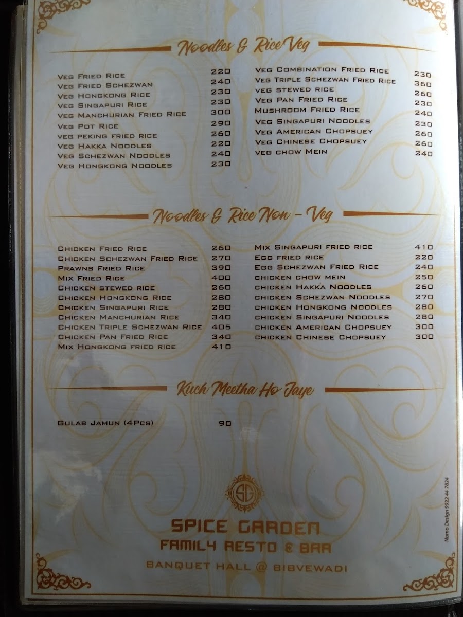 Welcome to Spice Garden - Pune, a delight for food lovers located at Purple Plaza, Bibwewadi. This culinary gem invites you to explore a menu that beautifully marries authenticity with flavor, offering both vegetarian and non-vegetarian options that cater to diverse palates. Customers rave about the delicious food and exceptional service, with highlights including their special chicken boneless, which tantalizingly combines two distinct spice profiles—yellow and red.